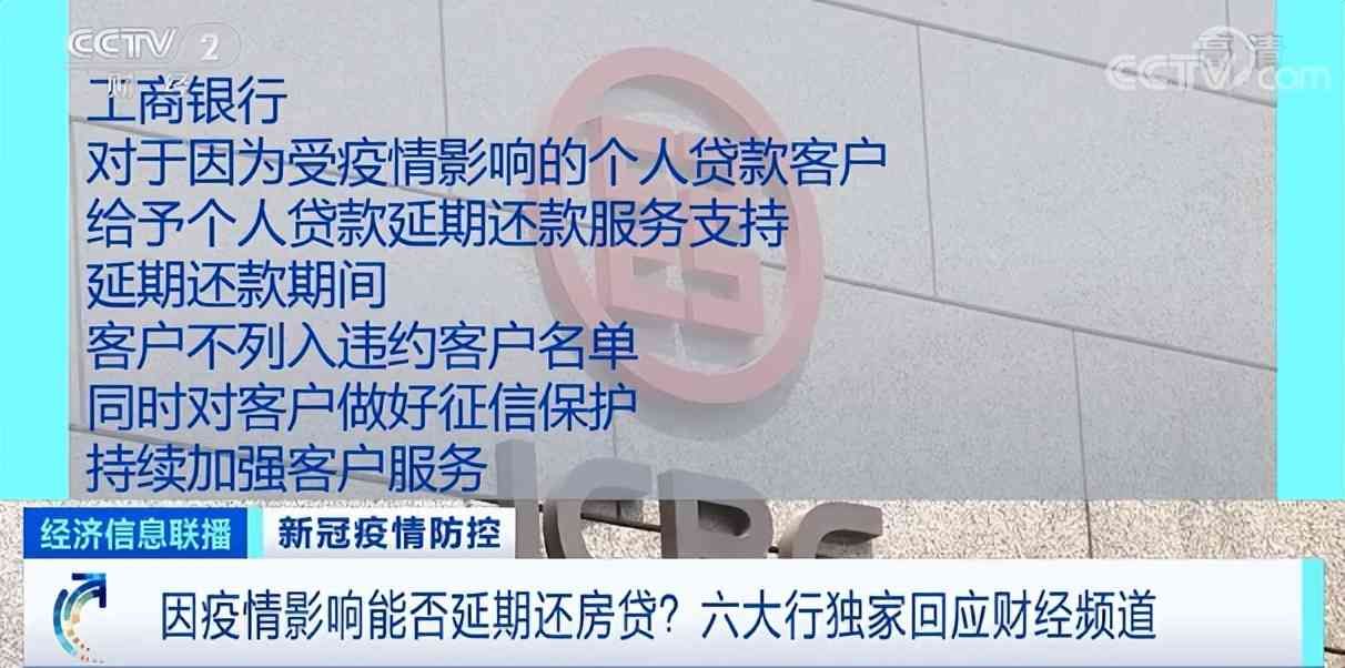 先拿宇宙行工商银行来说,对于受疫情影响的个人贷款客户,给予个人贷款延期还款服务支持,延期还款期间,客户不列入违约客户名单,同时会对客户做好征信保护。