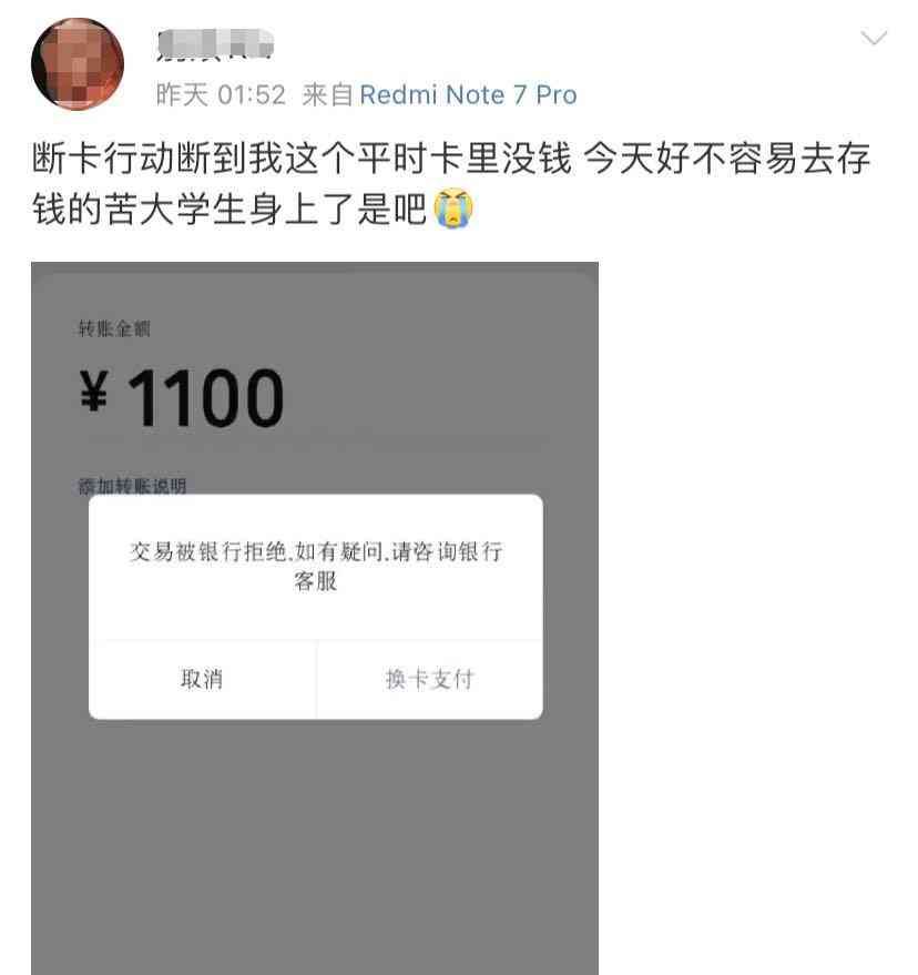 有持卡人表示,“刚把钱转进银行卡就给我断了,学费都交不了”。