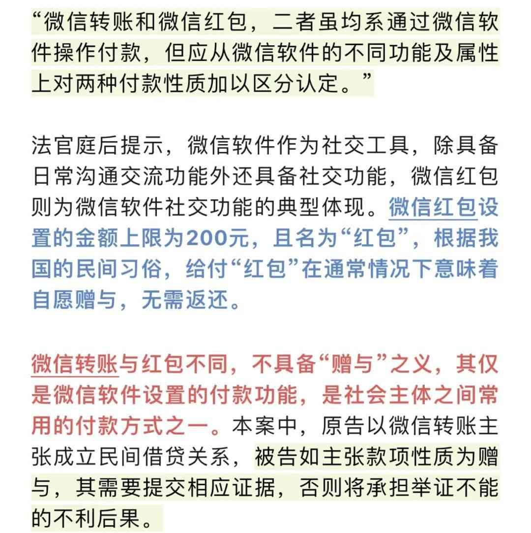 认定微信红包与转账性质存在区别