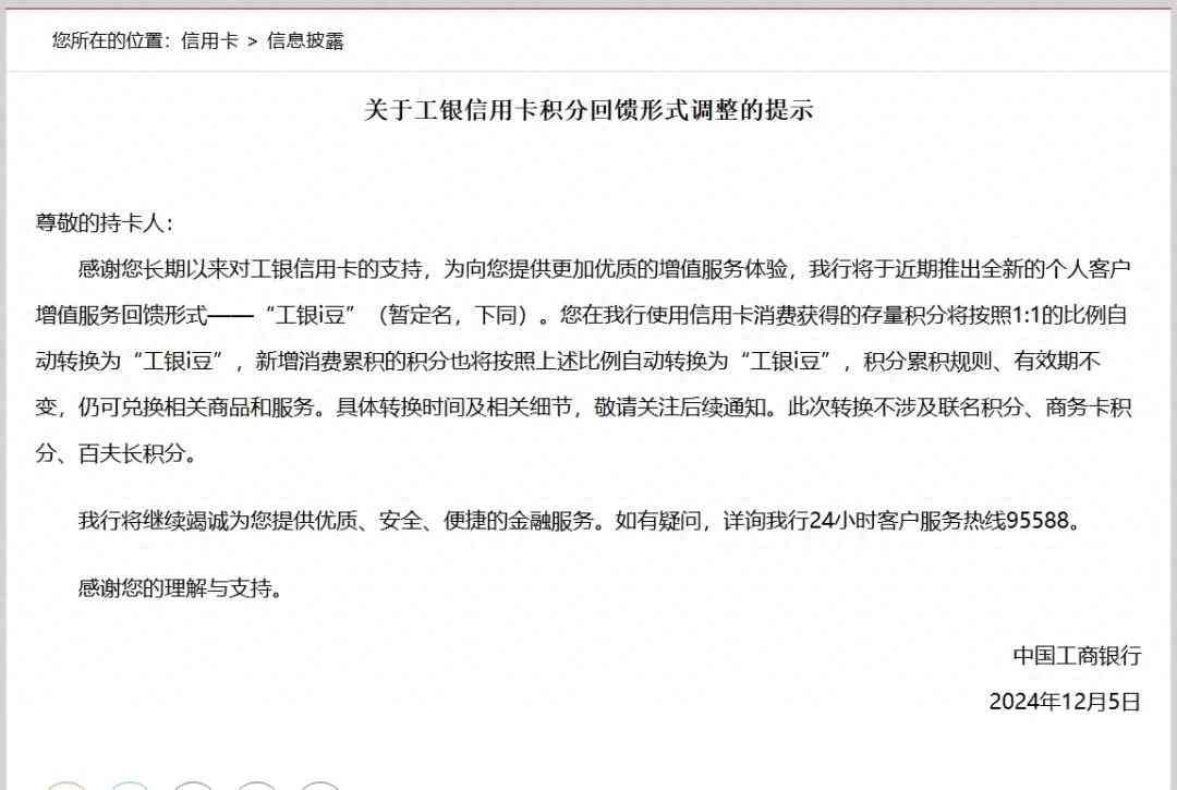 中国工商银行近日发布《关于工银信用卡积分回馈形式调整的提示》宣布,将对信用卡积分回馈形式进行重大调整,推出全新的个人客户增值服务回馈形式——“工银i豆”。