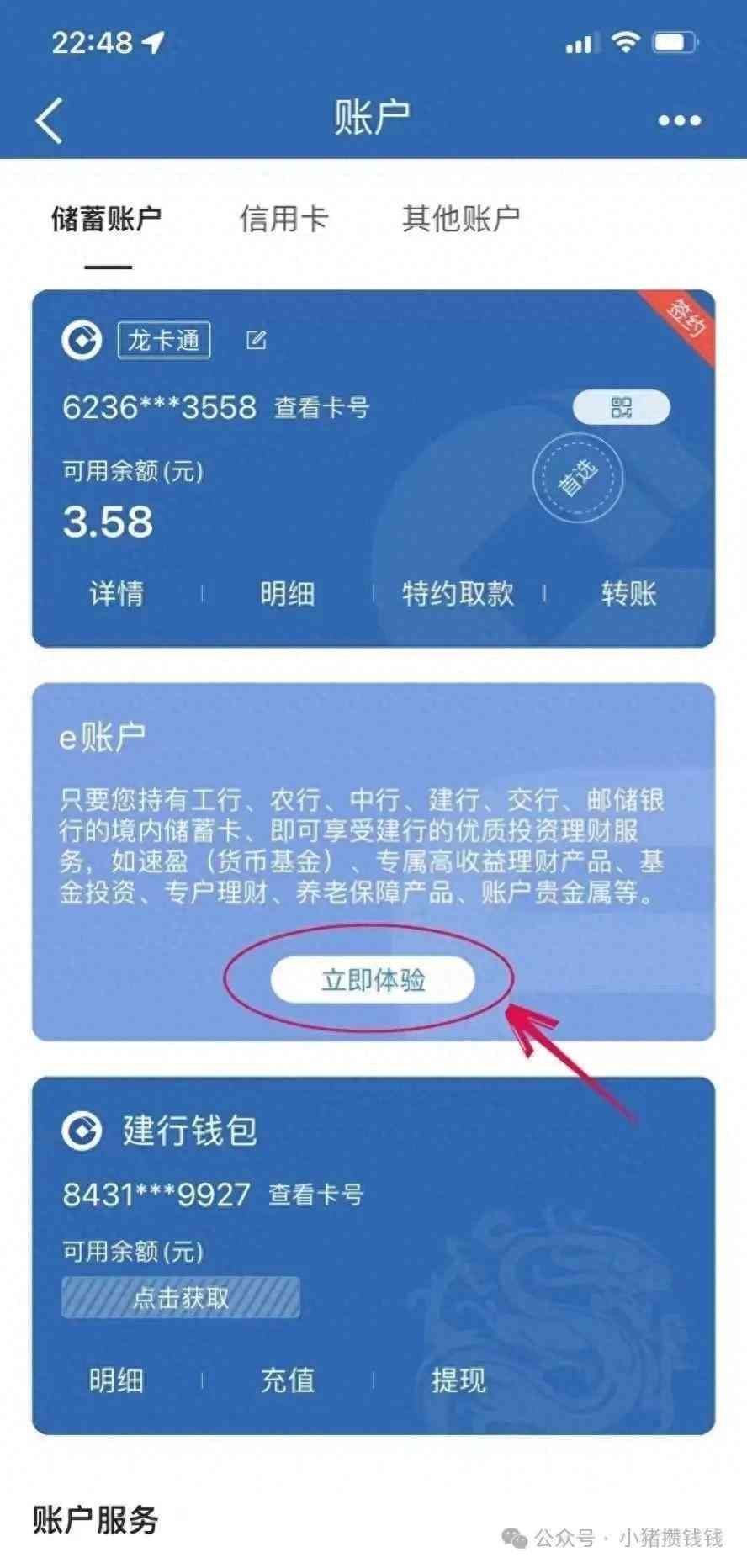 开出e账号之后,退出建行APP然后重新登录才能看到电子账户。直接用绑定的他行一类卡大额转入开立的建行二类户,入金大额转账进去