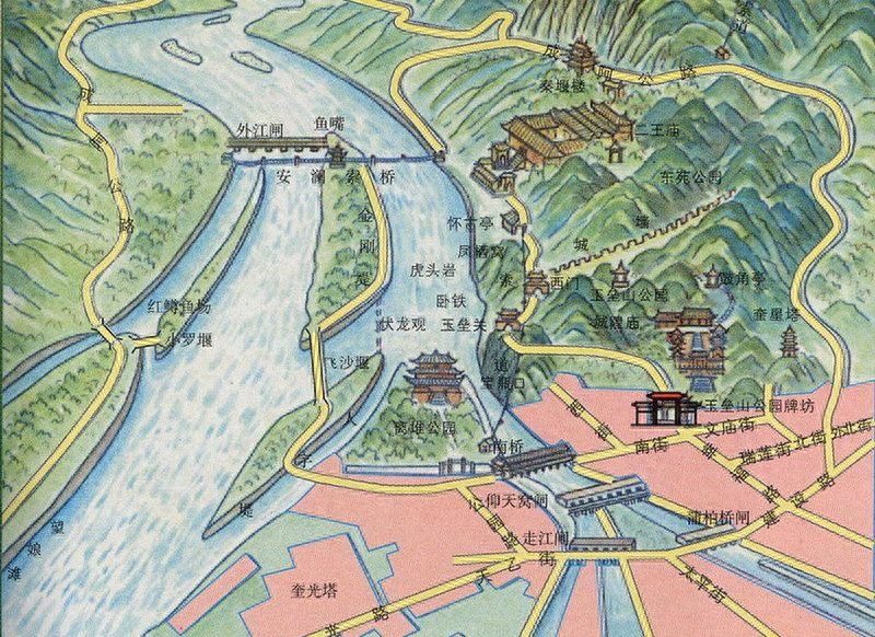 至宋代,“万岁池广袤十里,溉三乡稻田。”公元前250年(秦孝文王元年),蜀郡太守李冰凿离堆,开两江,成都始有郫江(相当今柏条河)和检江(相当今走马河)。这两条河经过城南,江宽水深,可通航船。两江之间有七桥,其中最著名的是万里桥(今南门大桥),是水路交通的起点,从这里乘船而下可直到今江苏的南京和扬州。