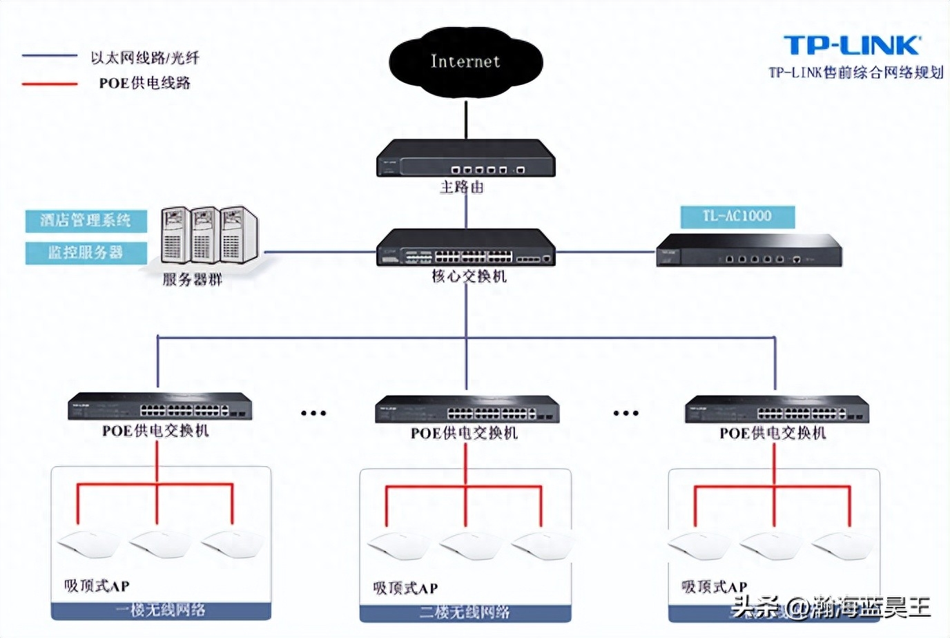 某企业的三层办公楼中已有有线网络,其中研发部、销售部、产品部分别使用VLAN 10、20、30三个不同的VLAN。现需实现无线网络覆盖,各楼层接入交换机支持标准PoE供电,将无线AP接入交换机,实现由AC无线控制器统一管控,且处于不同VLAN中的AP发射相同的无线名称(SSID)。