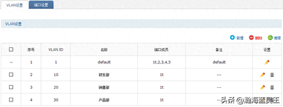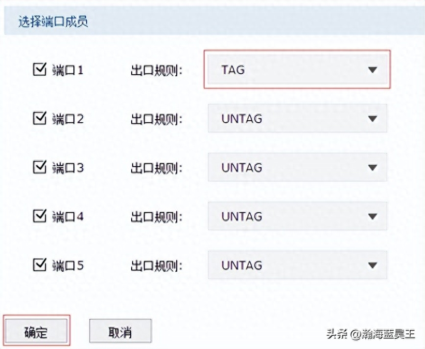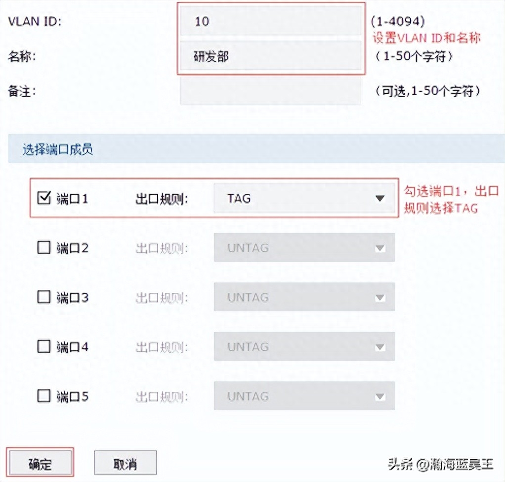 ,添加VLAN 10、VLAN 20、VLAN 30均包含1号端口,设置如下图: