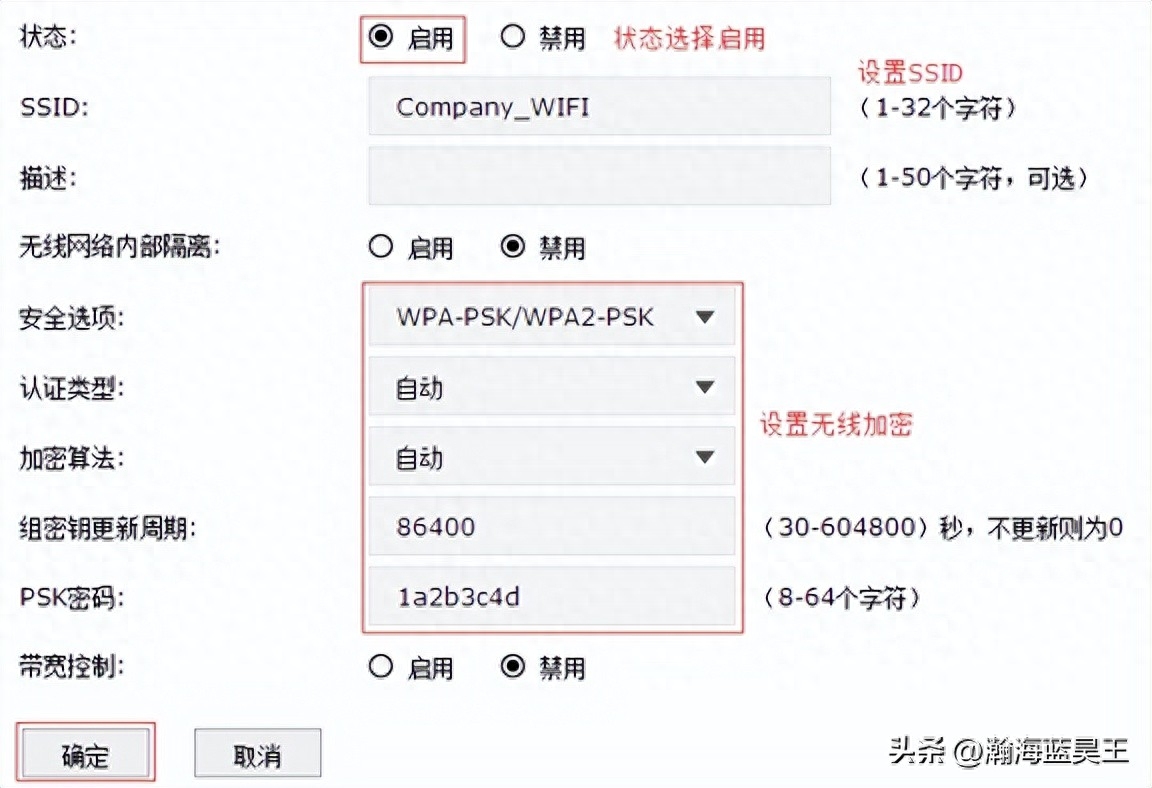 点击“无线管理<无线服务”, 新增一个SSID,设置如下图: