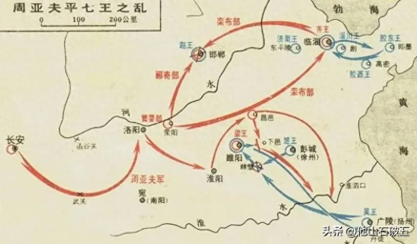 汉景帝重用周亚夫,窦婴等人,用三个月时间平定了判乱。