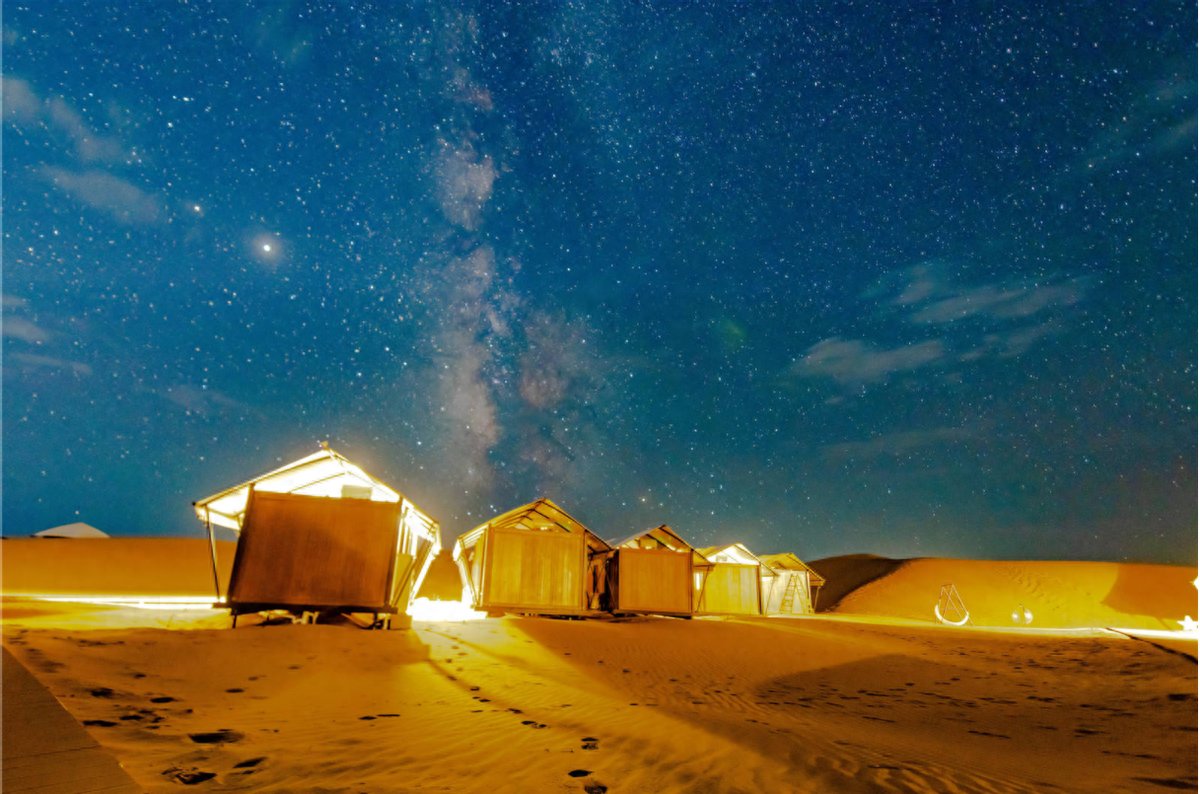 沙漠夜晚的星空和沙漠民俗文化,相互交融,增添了彼此的魅力。星空使沙漠变得更加神秘和迷人,而沙漠民俗文化则将星空融入了人们的生活和传统中。这是一种对自然的敬畏和对生活的把握,一种深深地扎根于人们心之深处的情感。沙漠民俗文化和星空的结合,既是对自然力量的敬畏,也是对生命和希望的向往。