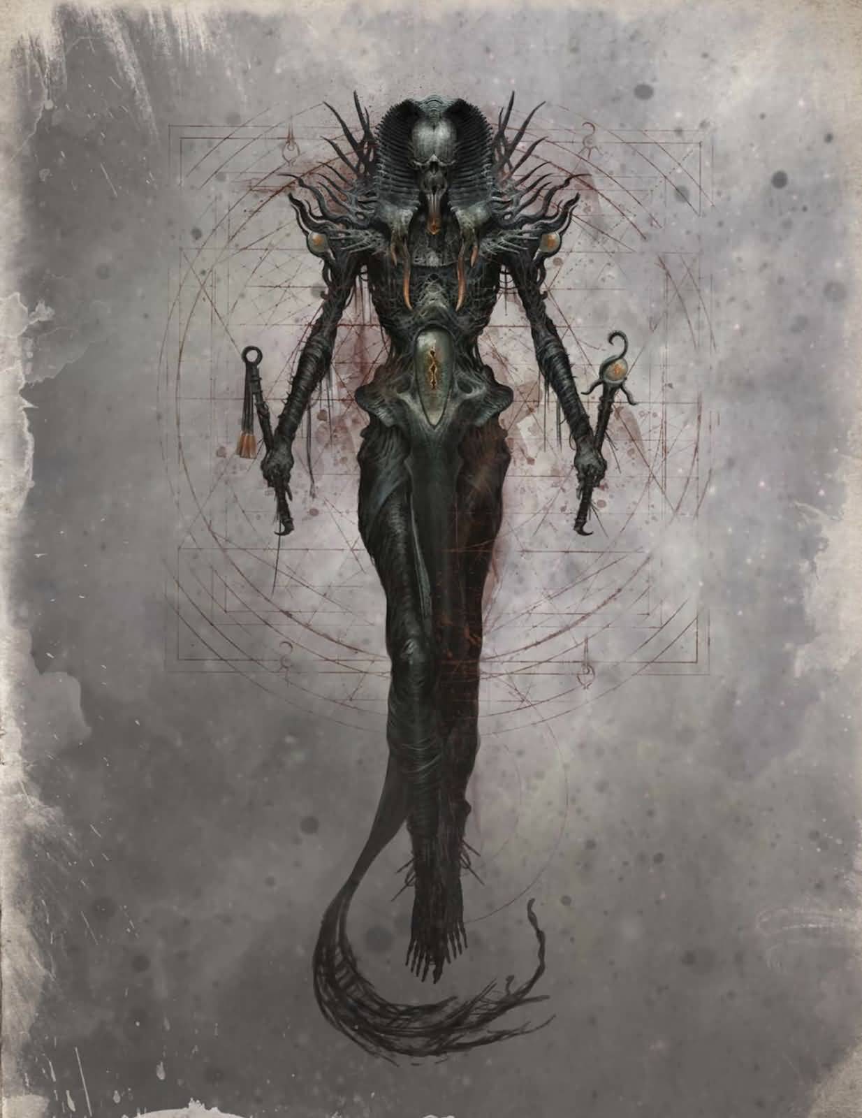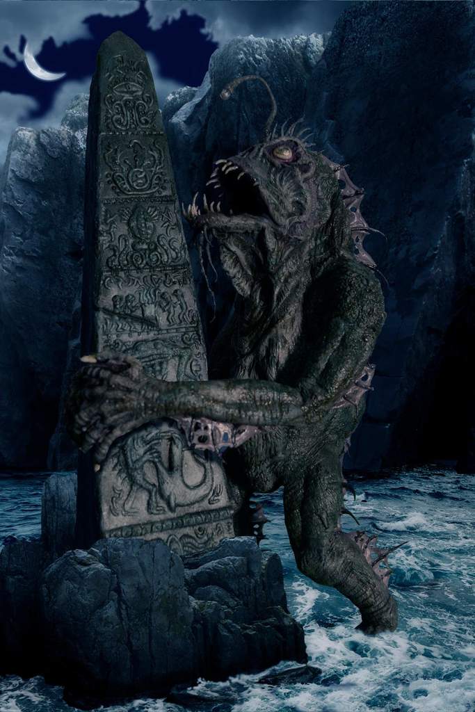 大衮被描绘为一个庞大而恐怖的存在,通常被形容为深海怪物或半鱼人。它拥有鱼类的特征,包括鳞片、鳍和鱼尾,但也具有人类的形态和智慧。大衮被认为是海洋的支配者,掌管着海洋深处的恐怖和神秘力量。