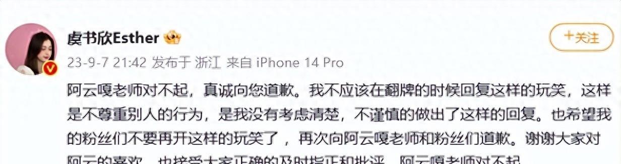 在漫漫的娱乐圈中,一不小心就可能跌入难以自拔的深渊。一段微不足道的玩笑,也可能引发巨大的波澜。女演员虞书欣曾因在微博上调侃歌手阿云嘎而上了热搜,这一小插曲起源于虞书欣主演的热播剧《云之羽》。粉丝们的幽默称呼“云为衫S了叫阿云嘎”,却激起了一阵微博风波。虞书欣回应“疑惑后发出爆笑”,然而这段看似无伤大雅的调侃,却在阿云嘎的粉丝中掀起了不小的波澜。