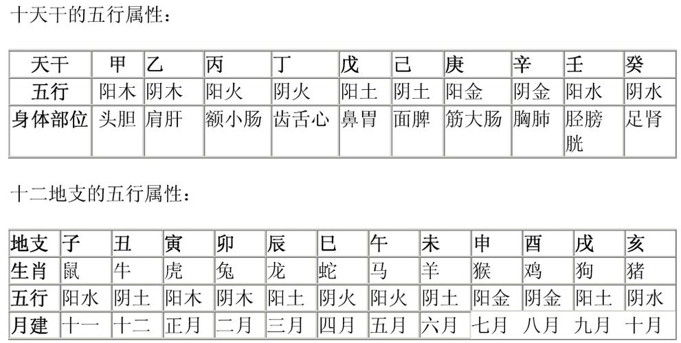 天干地支五行对照表( 天干地支五行应用)