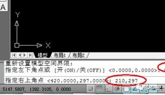 单击格式/图形界限,然后在命令栏设置图形的:左下角点和右上角点的坐标值,用捕捉确定。〈指定左下角点,输入0,0确认,指定右上角点,输入297,420确认,即A3纸。也可以不用0,0确定)
