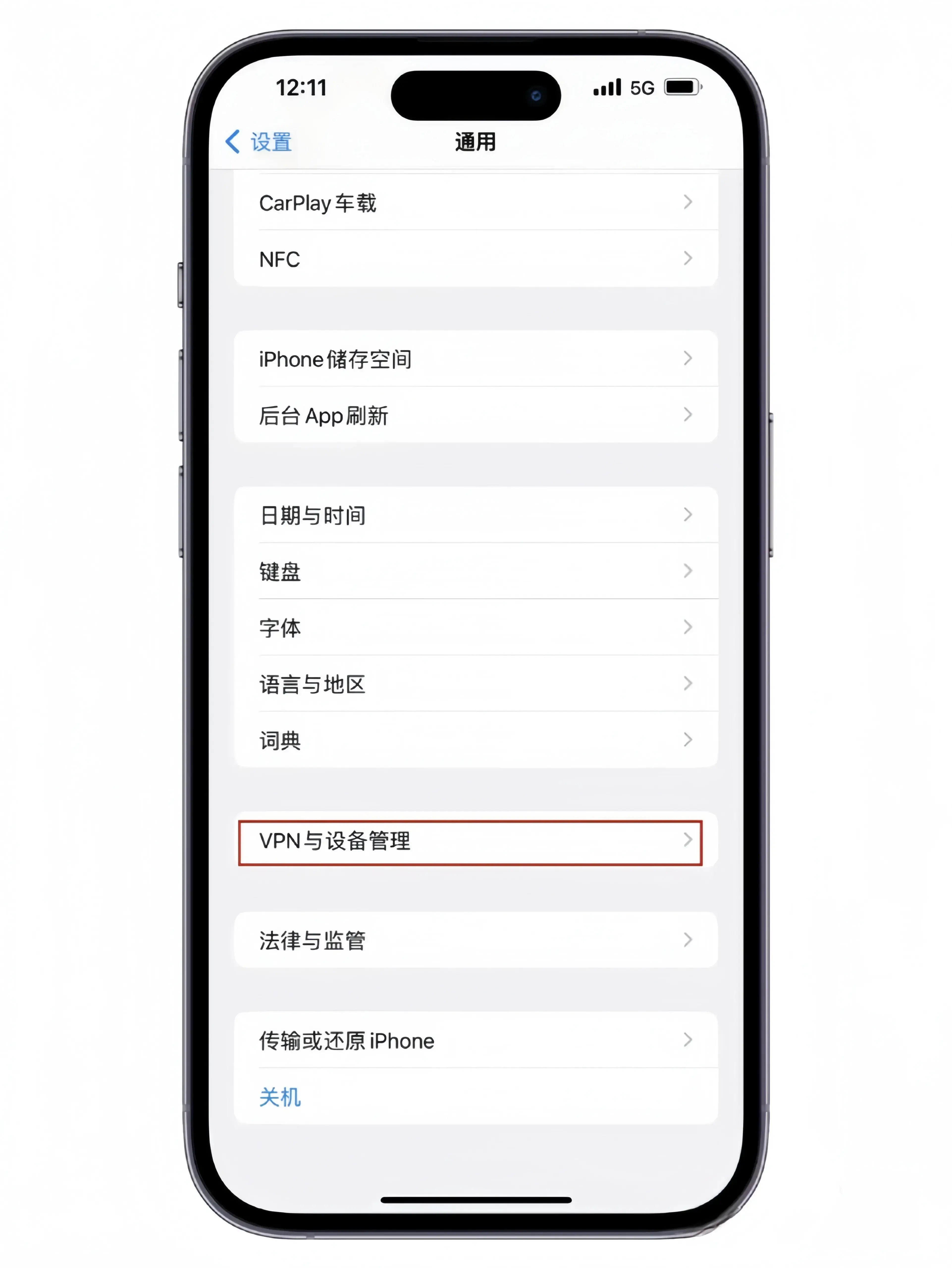 4.然后,在“通用”里找到“描述文件和设备管理”一栏。