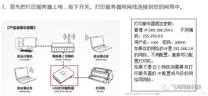 3. 根据您的需要,按照指南设置打印服务器的网络配置,包括IP地址、子网掩码、网关等参数。确保将设备与网络适当连接。