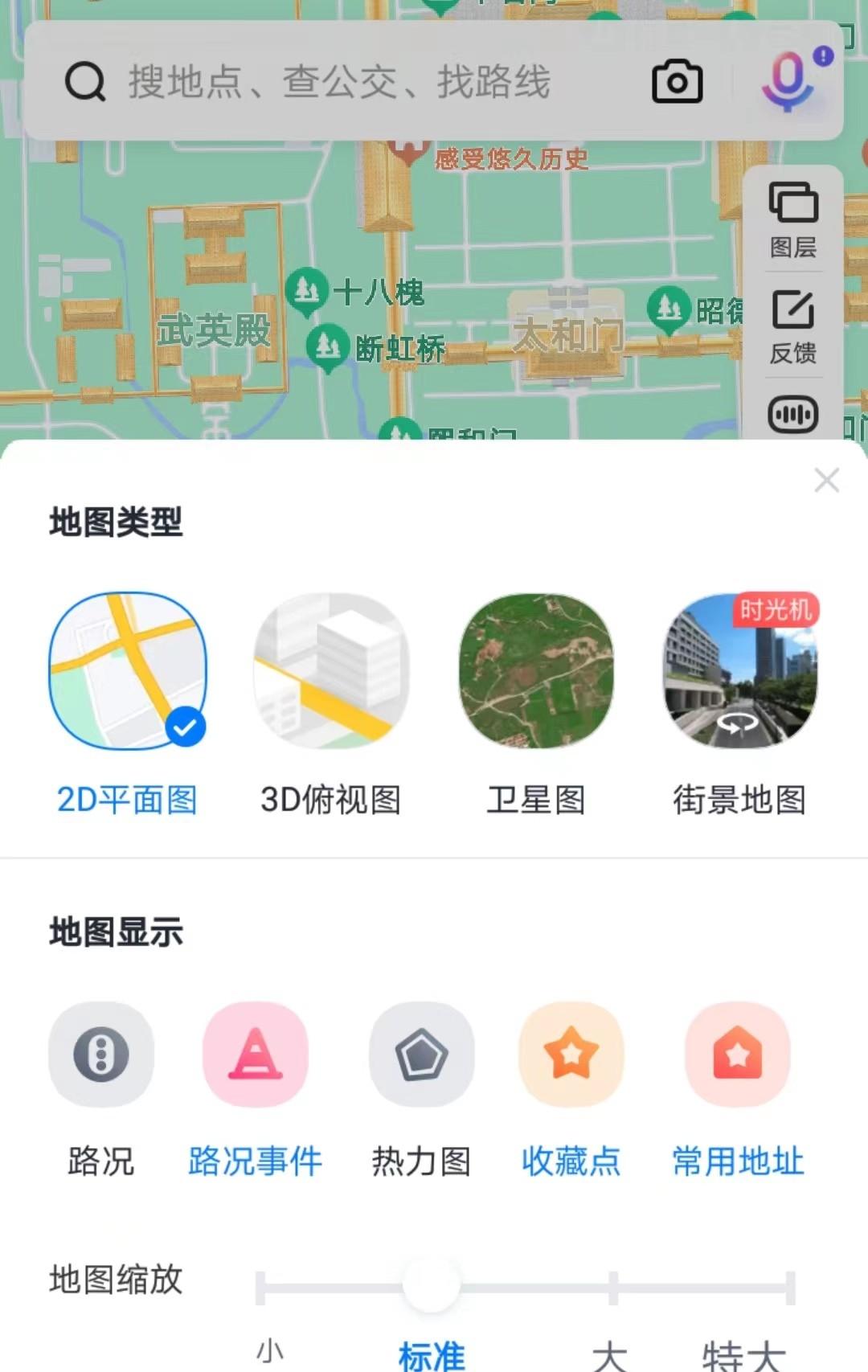第二步,无论我们用的是高德地图还是百度地图,打开后进入到地图首页,点击右上角的图层功能。我们可以看到里面有标准地图、卫星地图、公交地图,我们把默认的标准地图更改为卫星地图即可。