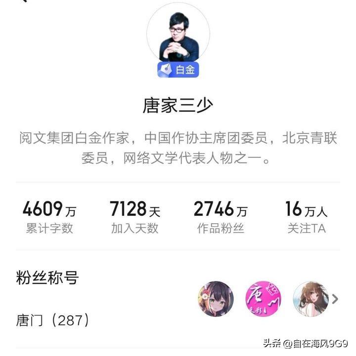 目前,从起点中文网上,唐家三少的个人主页上看,唐家三少已发布作品的总字数达到了4609万字,这个字数在所有的网文作者中虽然不是最多的,可也是一个巨大的数字了。
