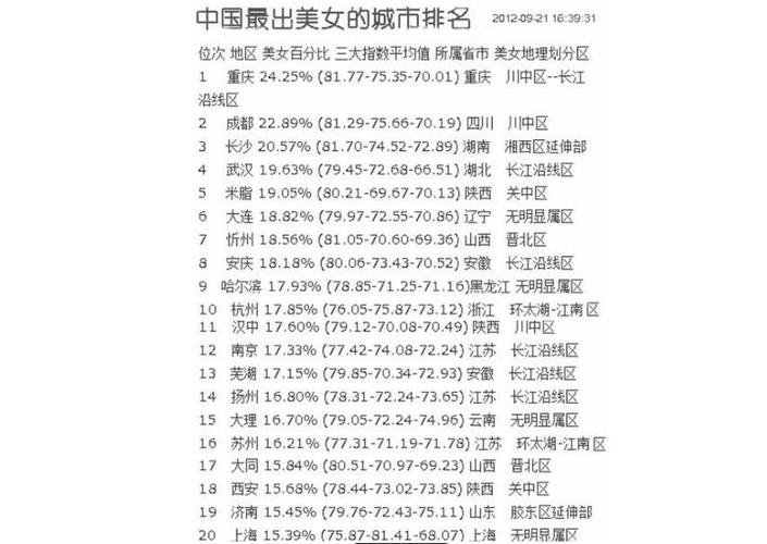 重庆美女全国排名第几(中国美女最多的10座城市)