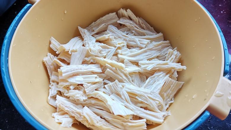 首先,我们需要准备一些腐竹,在市场或超市都可以买到。将腐竹掰成适合自己的大小后,放入一个容器中。