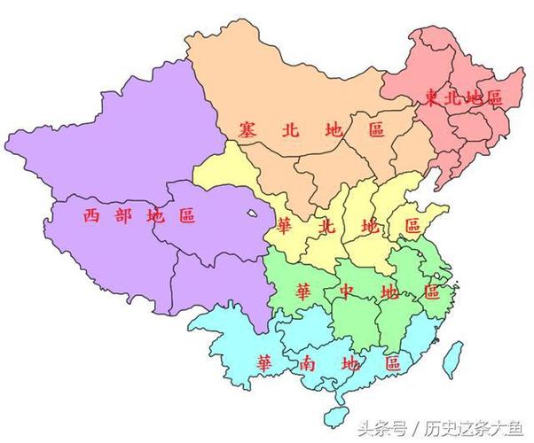 首先中国分为七个部分,分别是华东,华南,华北,华中,东北,西南和西北。