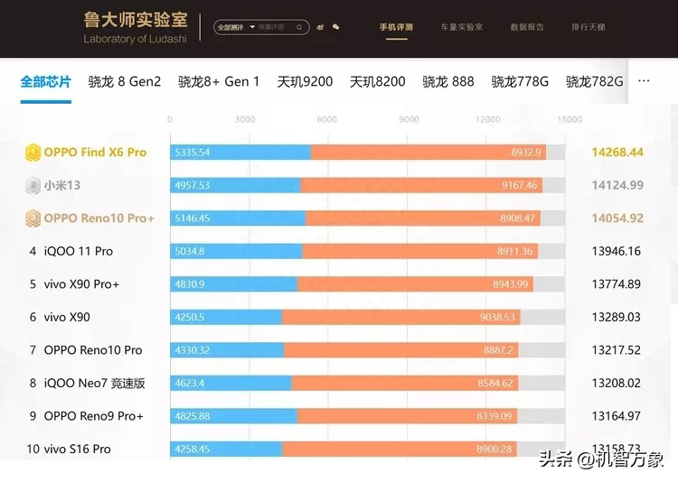 根据榜单公布的Top10具体入围机型来看,OPPO旗下的四款分别为OPPO Find X6 Pro、OPPO Reno10 Pro+、OPPO Reno10 Pro、OPPO Reno9 Pro+分别位列第一、第三、第七和第九,要知道这些机型的处理器都不相同,但是却依然凭借优化达到或者超越相同处理器的机型。比如OPPO Reno10 Pro+,凭借骁龙8+处理器就甩开了一些骁龙8 Gen2处理器的机型,表现非常亮眼,ColorOS确实挺好用的。