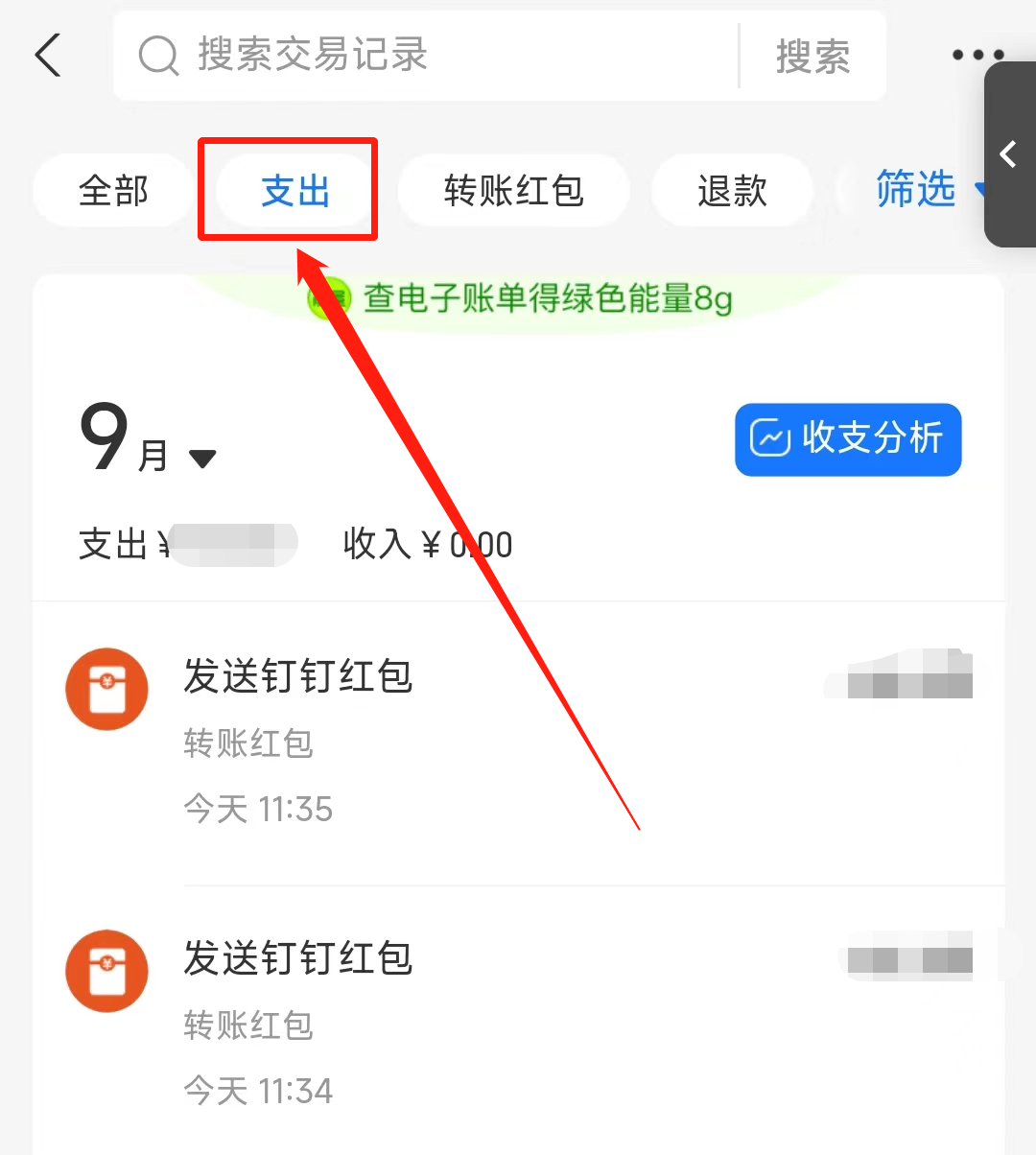 点击界面中的“支出”选项,即可看到支付记录信息。