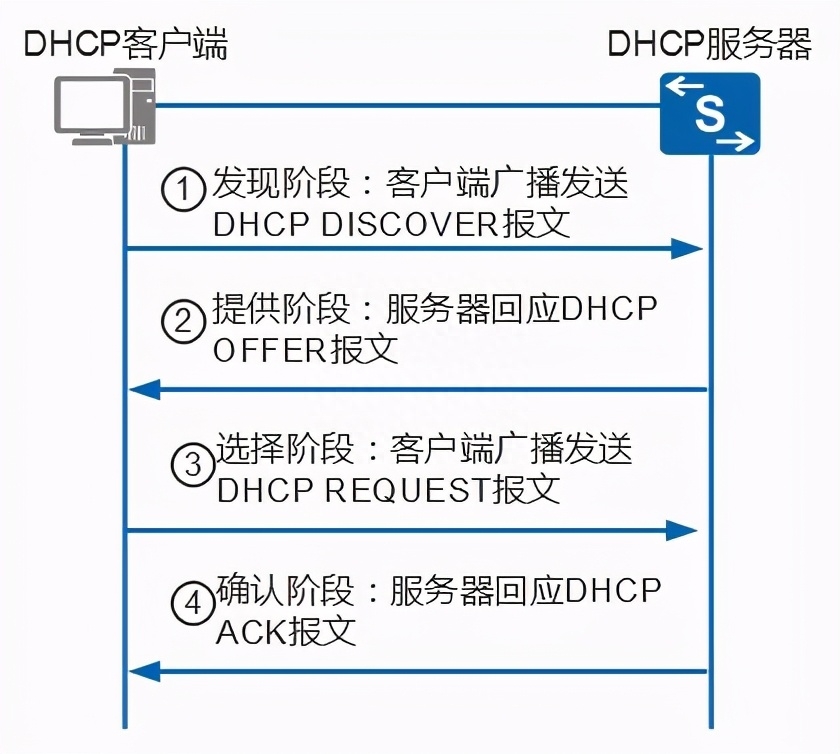DHCP客户端与DHCP服务器的报文交互过程的四步交互,就好比找工作的过程。
