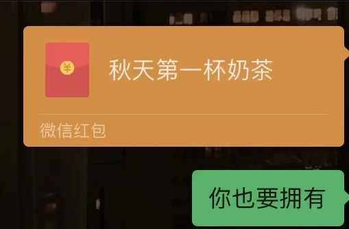 1、以秋天的第一杯奶茶为名义,向心爱的人发一个价值52元的红包;