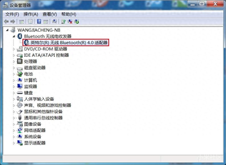①首先在系统控制面板中打开【设备管理器】窗口,然后找到并展开【Bluetooth无线电收发器】,接着双击其中对应的的蓝牙适配器驱动名称子项。