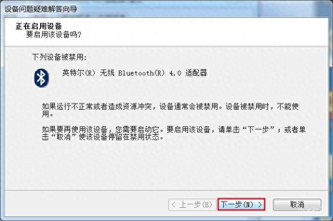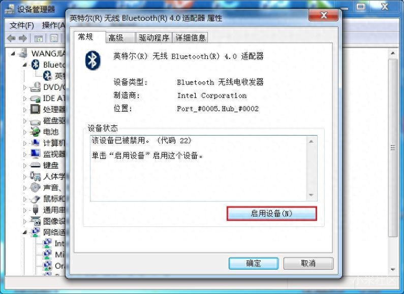 ②在其属性窗口【常规】选项卡下【启用设备】,通过“设备问题疑难解答向导”【完成】启用设备。