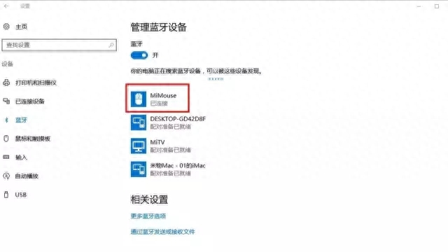 ②找到名称为 MiMouse 的设备并点击配对,稍等几秒钟,待显示已连接后即可使用。