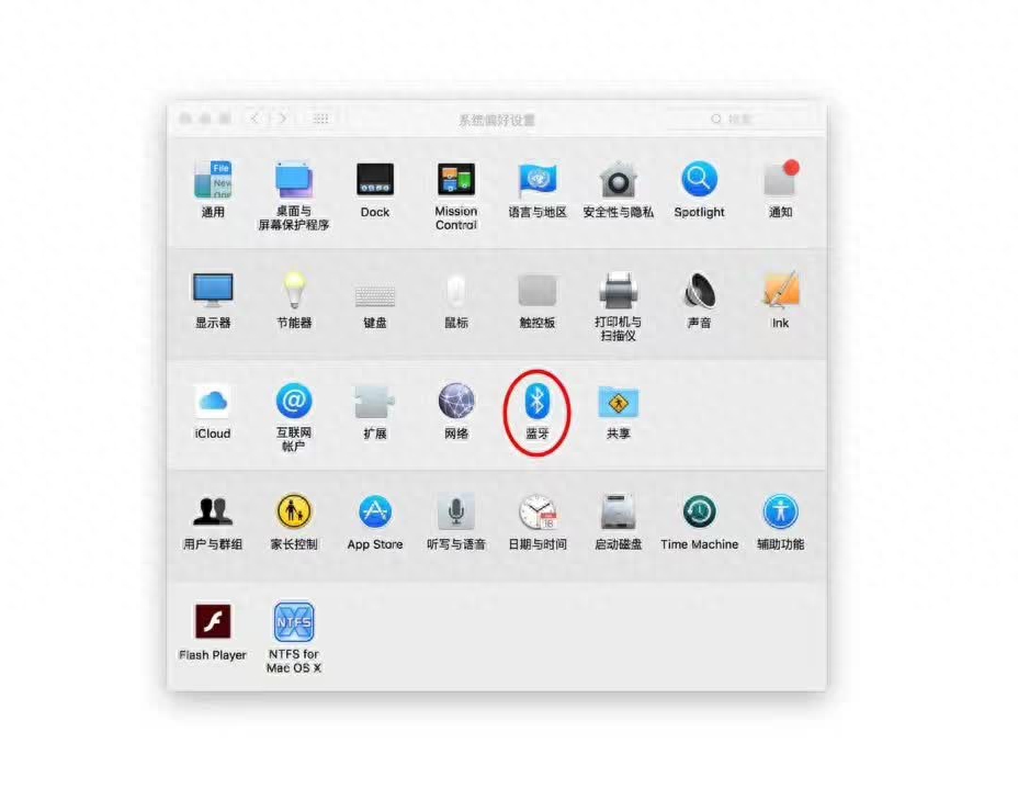 ①打开 Macbook 系统偏好设置,进入蓝牙功能界面