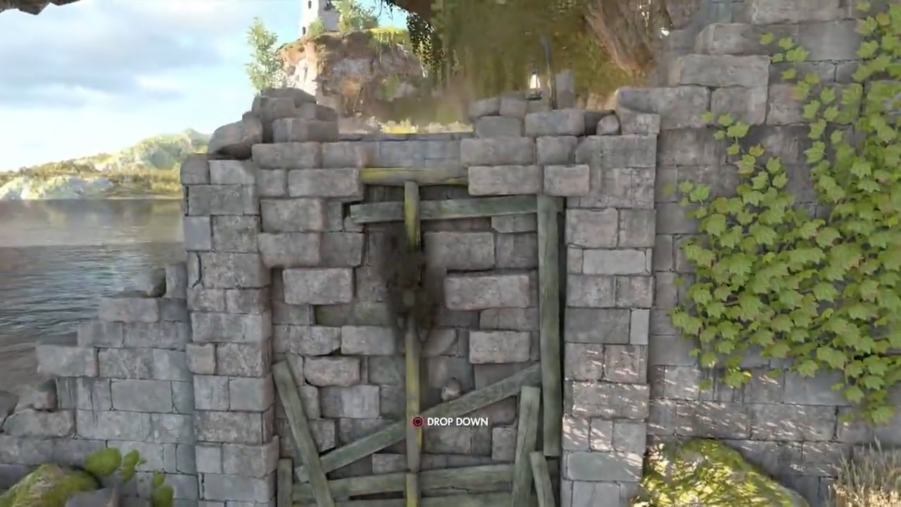 从这里抵达上方,前进后,按C蹲下经过矮小的路口。