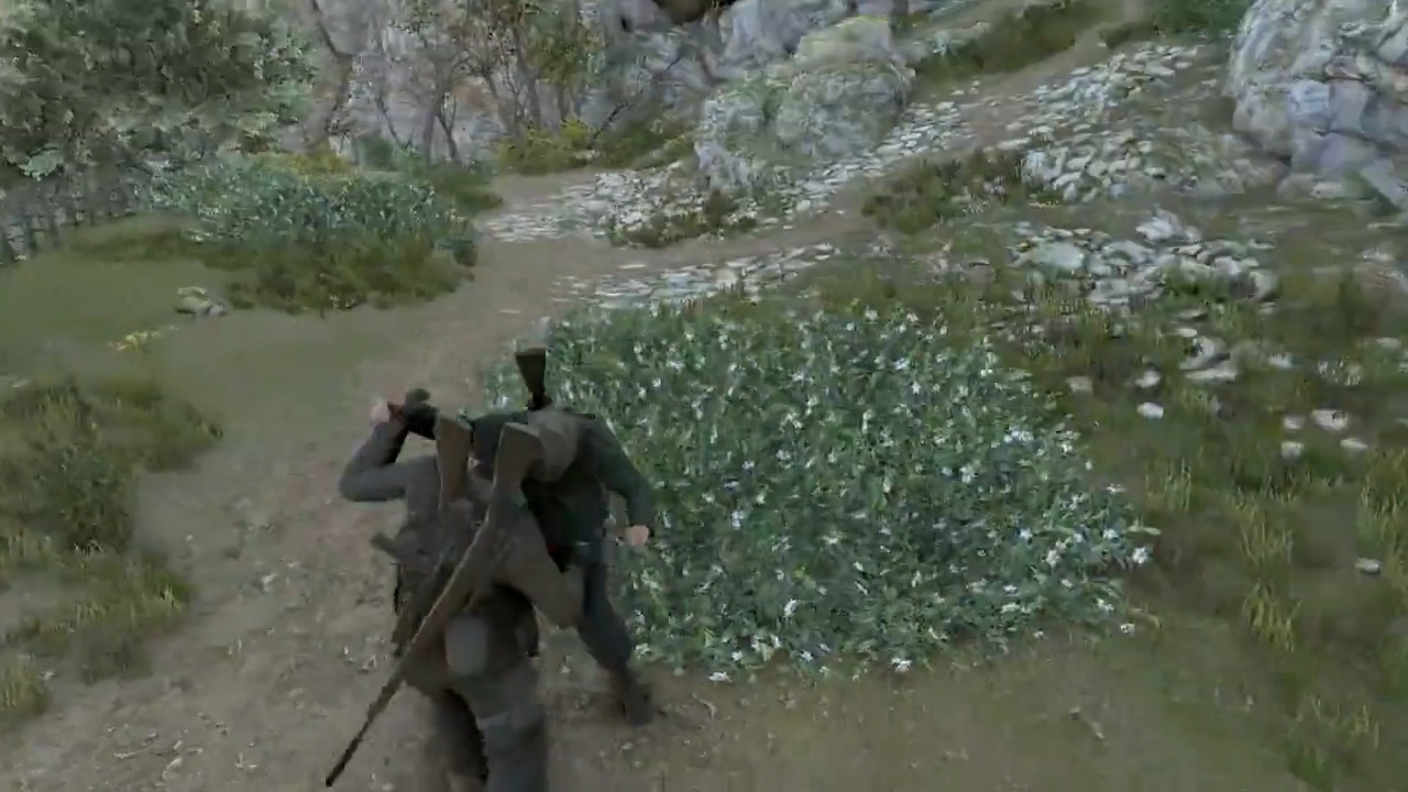 接下来一路跑穿过山洞往左边前进来到下面这片区域。这片区域有2个敌人,暗杀掉。